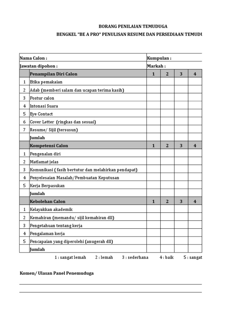 Penemuduga Contoh Borang Penilaian Temuduga Kerja Otosection